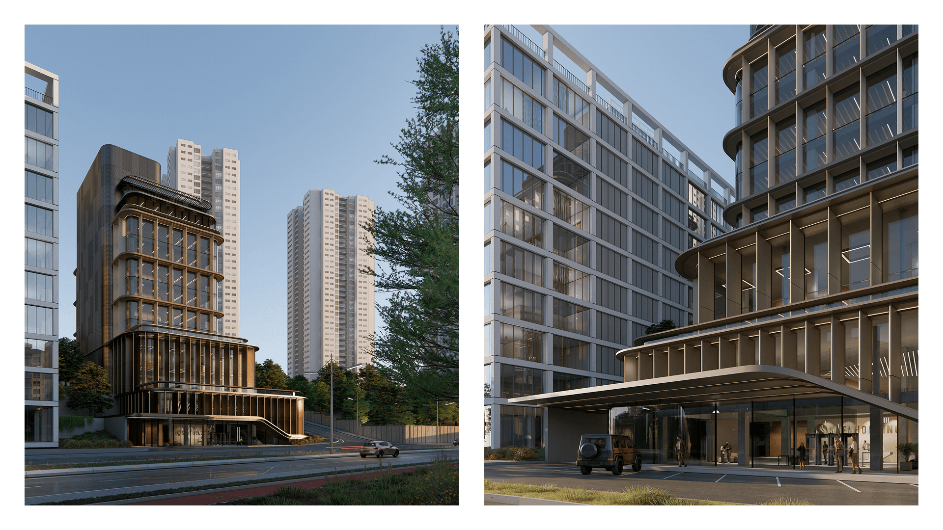 The façade is defined through a balanced composition of metal and glass, where the selected metal tone becomes a deliberate and defining element in the search for a strong architectural identity.