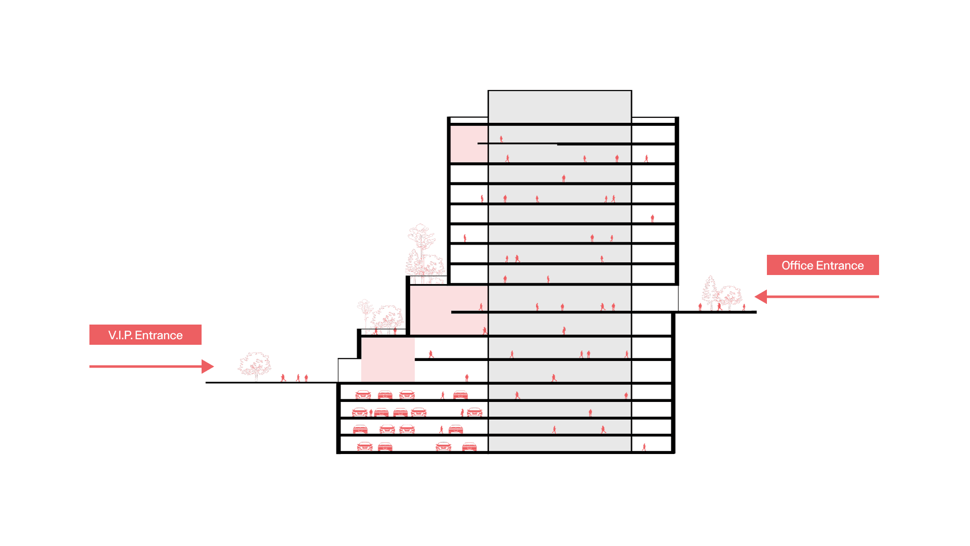 Through these volumetric and material decisions, the building is redefined beyond its envelope, establishing a clear and powerful presence.