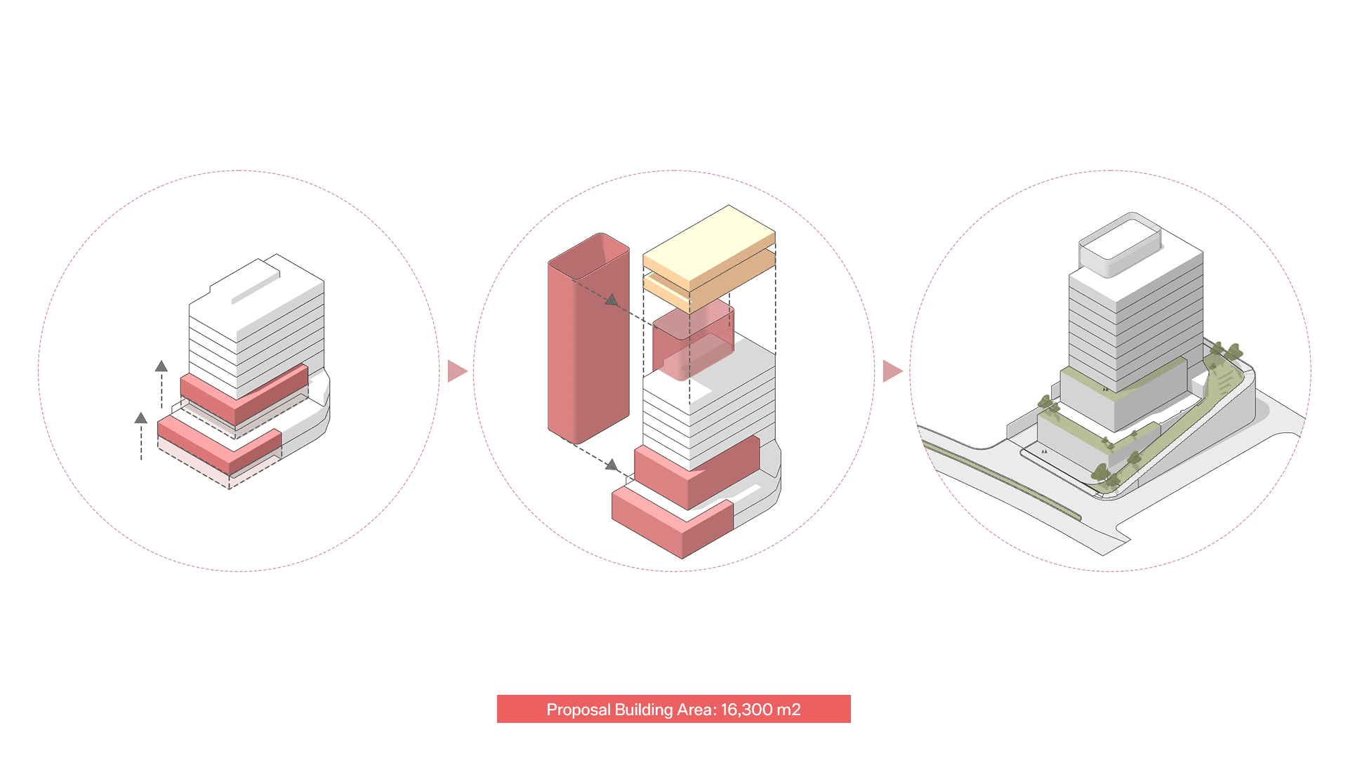 Instead of treating the façade as a surface intervention, the proposal operates directly on the mass—introducing voids and depth to correct proportions and enhance spatial clarity.